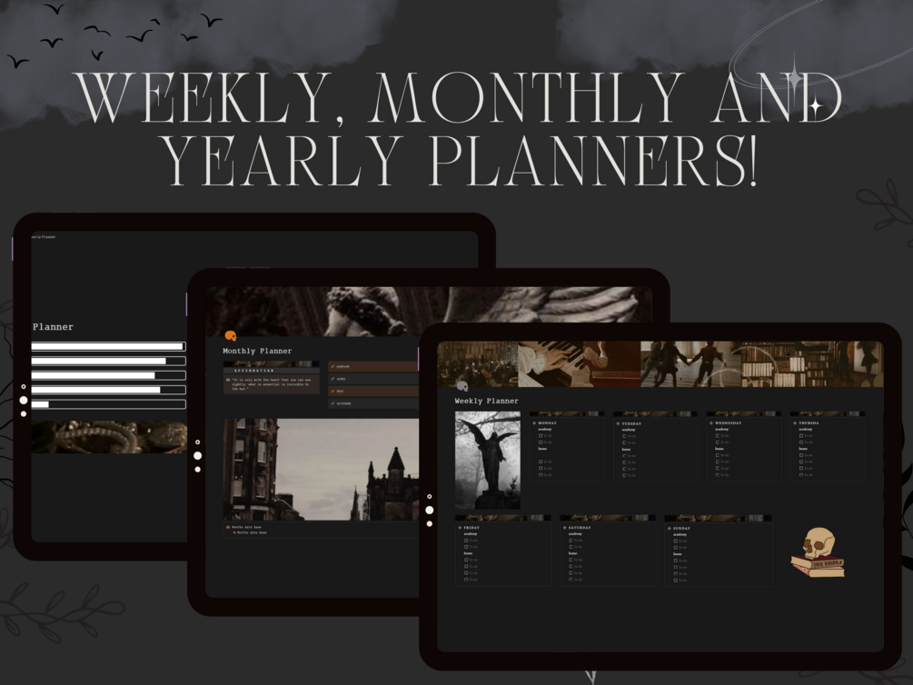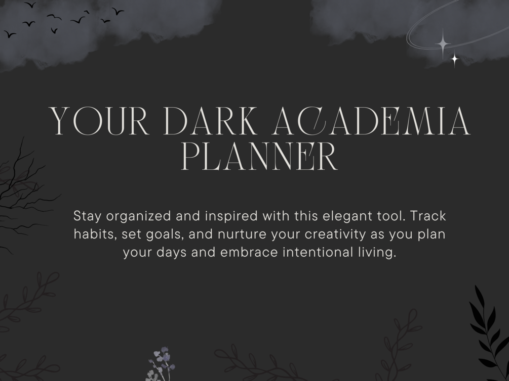 Elevate your planning game with this aesthetic and practical student planner! Perfect for fans of the dark academia aesthetic, this planner is designed to help you stay organized, inspired, and in control of your goals.