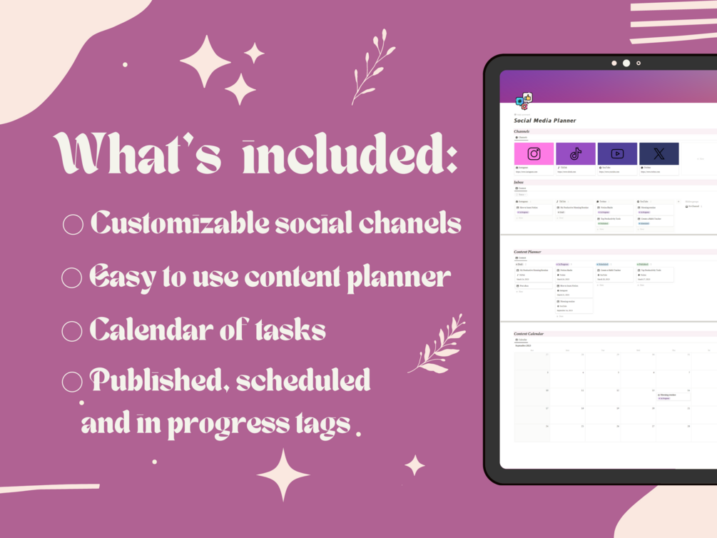 🌐 Cloud-Based and Accessible Anywhere: Access your Notion planner from anywhere with an internet connection. It's cloud-based, so you can plan and manage your social media on the go.