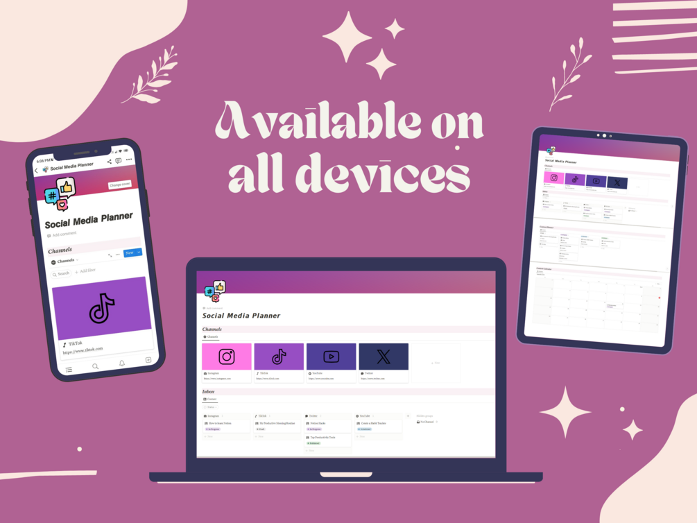 🌐 Cloud-Based and Accessible Anywhere: Access your Notion planner from anywhere with an internet connection. It's cloud-based, so you can plan and manage your social media on the go.