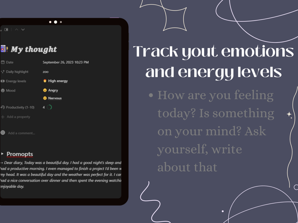 Energy Levels: Keep tabs on your energy throughout the day. Understand when you're most productive and when you might need a break.